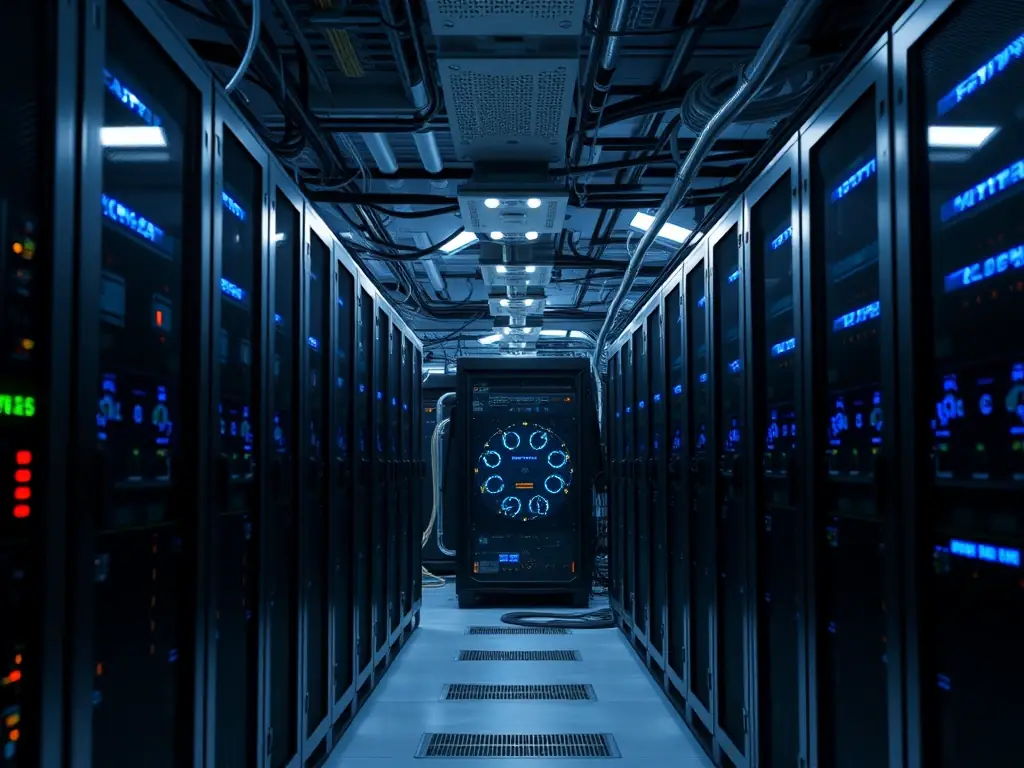 A server room with advanced IT infrastructure, symbolizing Masar AlTalaq's enterprise IT solutions.