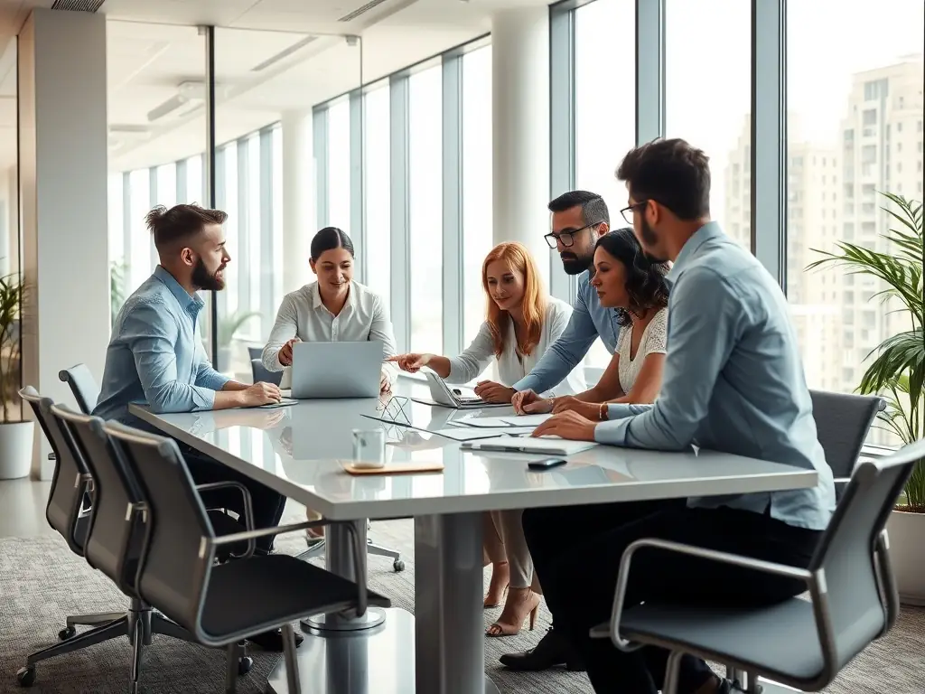 A project manager leading a meeting with a team, discussing project milestones and timelines, with a focus on strategic planning and efficient resource allocation.